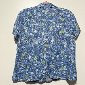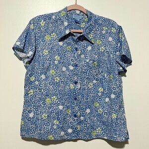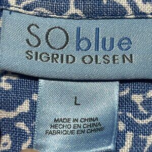 Sigrid Olsen Womens Linen Button Up Top Size L Blue Floral Summer Coastal Resort