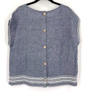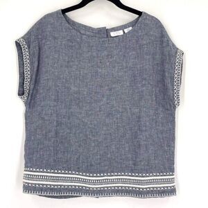 Sigrid Olsen Women's Linen Chambray White Embroidered Trim Top Blue Size XS