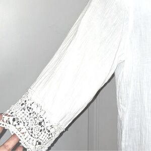 Sigrid Olsen Women’s Linen V-Neck Crochet Trim Swim Cover Up Large