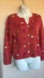 Chic cardigan, salmon with pink & gold embroidery. Features a unique square pattern and mother of pearl shell button closure. Fabric: ramie, rayon, & silk with cotton.