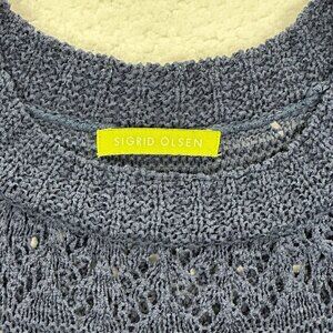 Sigrid Olsen Women's Open Crochet Weave 3/4 Sleeve Knit Sweater Size M* Blue