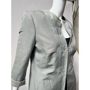 Sigrid Olsen Womens Overcoat Gray Button Long Sleeve Embellished Pockets Lined 4