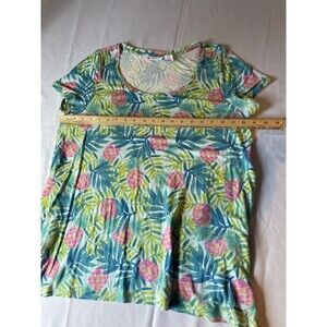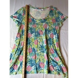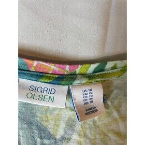 Sigrid Olsen Womens Plus Size 1X 100% Linen V-Neck T-Shirt Top Green Floral