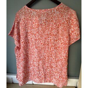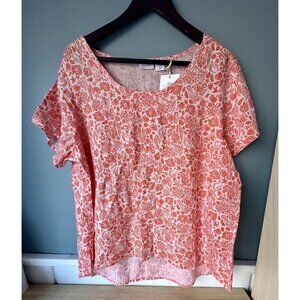 Sigrid Olsen Womens Shirt Top Size XL Pink Orange Floral Linen Short Sleeve