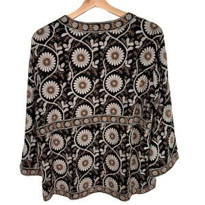 Sigrid Olsen Womens Size XS Indian Jacquard Floral Print V-Neck Cardigan Sweater