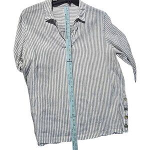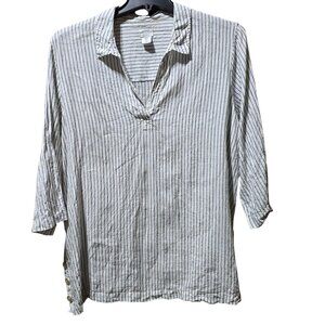 Sigrid Olsen Womens Sz 1X Striped Button Detail 3/4 Sleeve Tunic Top 100% Linen