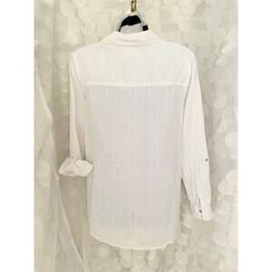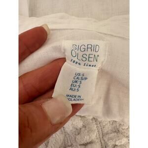 Sigrid Olsen Women's White 100% Linen Button Down VNeck Collar Blouse Shirt Sz S
