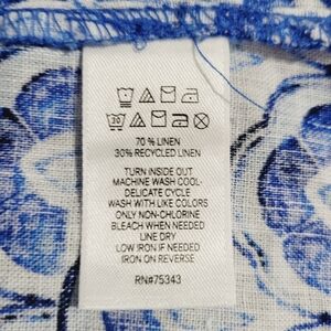 Sigrid Olsen Womens XL 100% Linen Tunic Top Blue White Pattern V-Neck 3/4 Sleeve