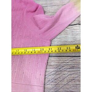 The product is a stylish and colorful women's top in XL size, featuring an ombre pattern in pink and green. This lightweight knit top is made from a blend of silk and linen, making it perfect for all seasons. With long sleeves, a V-neckline, and a pullover closure, this top offers a casual yet chic look suitable for various occasions including travel, parties, workwear, and business meetings. The breathable fabric and keyhole neck detail add to the overall appeal of this versatile piece from the brand Sigrid Olsen.
