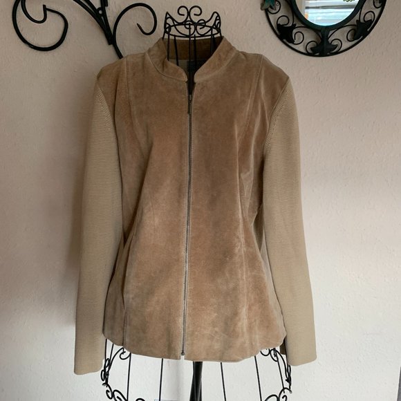 Sigrid Olsen Women's size Medium Tan Leather/ Silk Jacket