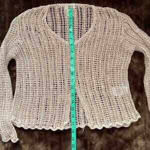 Sigrid Olsen XS Oatmeal Open-Stitch Crochet Cardigan Sweater MOP Buttons