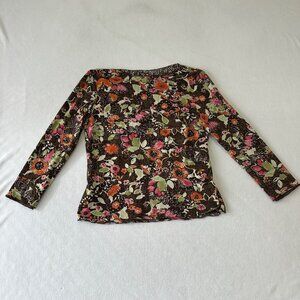 Sigrid Olsen Y2K Nylon Mesh Babydoll Floral Top Size M Petite Fariycore Brown