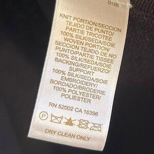 Material: 100% silk; embroidery 100% polyester. Dry clean.