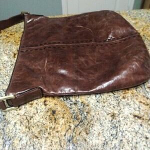 Sigrid Olsen brown leather purse Green interior Shoulder Bag note: bag has wear see pics, could use oil