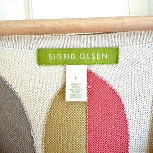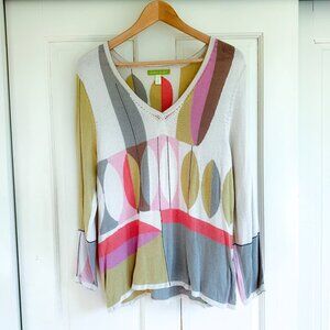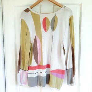Sigrid Olsen lightweight mid-century pattern V neck silk sweater L