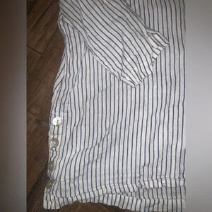 Sigrid Olsen linen 1x blouse striped top mother of Pearl buttons $140
