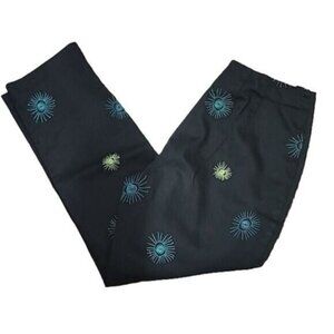 Sigrid Olsen petite Pants mid-rise Sport black cropped w/beaded sun design 4P