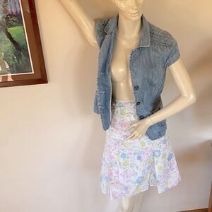 Sigrid Olsen two piece Set Denim top flowered skirt coordinated set size 6