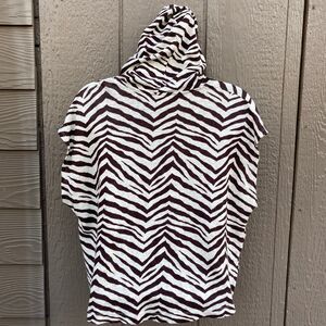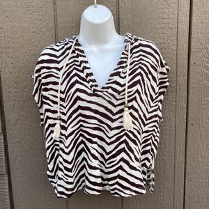 Sigrid Olsen women's size large top Hooded Cap Sleeve cropped 100% Linen Zebra