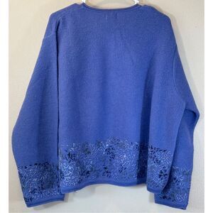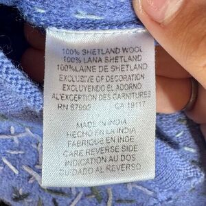 Sigrid Olsen 100% Shetland Wool Button Up Embroidering Detail Cardigan Sweater