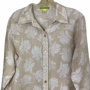 Sigrid Olsen Linen Beige Floral Graphic Shirt M