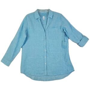 Sigrid Olsen~Woman Size~M~Linen Shirt Long Sleeve Roll Tab Blue Beachy Lagenlook