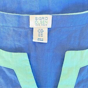 Sigrid Olsen 100% Linen Sky Blue Aqua Green Shift Mini Dress Sz M