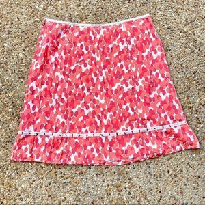 Sigrid Olsen silk blend lined oval polka dotted skirt with beaded detailing.