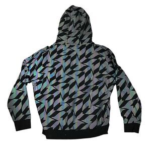 This SikSilk hoodie in XL is your go-to for those crisp fall days when comfort and style are key. With its sleek black color and graphic print, it’s perfect for casual outings, weekend hangouts, or even a laid-back office day. The pullover style with a crew neck and long sleeves ensures a comfortable fit, while the reflective design adds a touch of modern flair. Made from a premium blend, it’s both cozy and durable. Plus, it's machine washable for easy care. This hoodie is pre-owned, offering you style and comfort at a great value.
