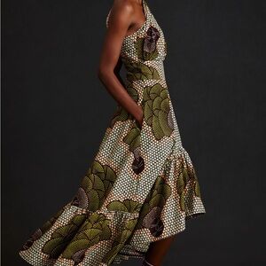 Sika One-Shoulder Green Patterned Ruffle Maxi Dress