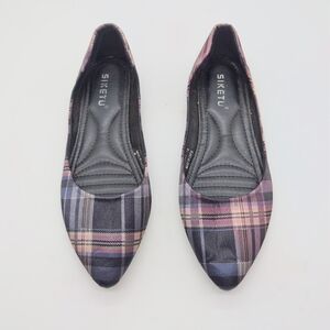 Siketu Sz 8.5 Plaid Flats - Purple Pink Black