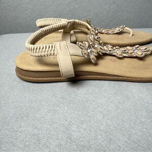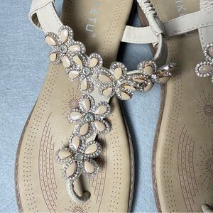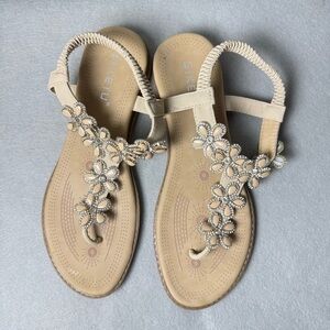 Siketu Women’s Floral Thong Strappy Sandal Beige Sparkle Accents Elastic Heel 42