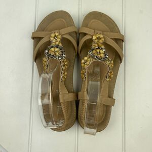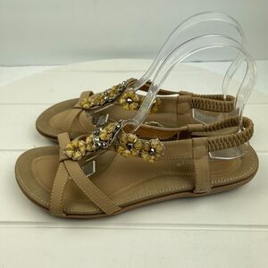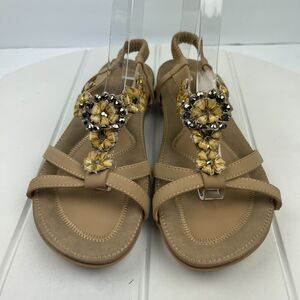 Siketu Womens Sandals 8 (39EU) Beige Embellish With Flowers Sling Back Tongs