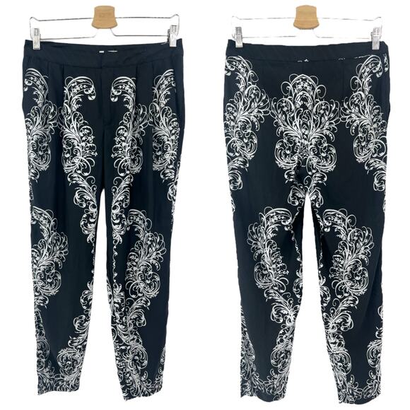Silence + Noise (4) Womens Black White Scrolling Floral Tapered Skinny Crop Ankle Pants