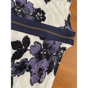 Silence + Noise racer back top Y2K in size S. Features a soft zipper, blue and purple floral pattern, and is made from a rayon-cotton blend.