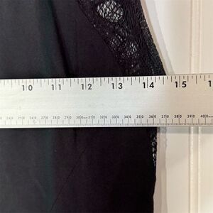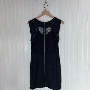 Channel edgy cool-girl energy in this Silence + Noise black sleeveless mini dress, size 4. Features sheer mesh lace shoulder panels and an exposed back zipper for a sultry touch. Made from a lightweight rayon shell with cotton-blend lace inserts. Approx. 33.5” length, 14” pit to pit, 13.5” waist. Urban Outfitters brand—perfect for layering or wearing solo for a sleek gothcore or downtown grunge look.
