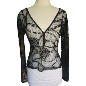 Silence + Noise Black Mesh Plunging Neckline Top - M