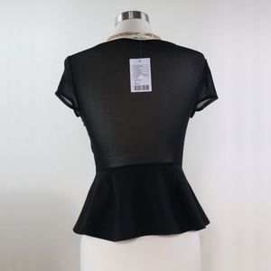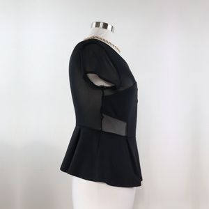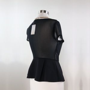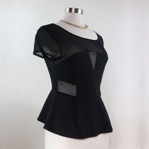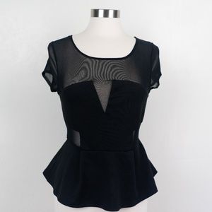 Silence + Noise Black Sheer Mesh Peplum L Top