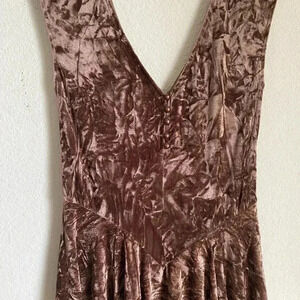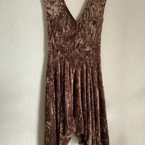 Silence + Noise Corina Velvet Brown Asymmetrical Short Sleeve Whimsygoth Dress S