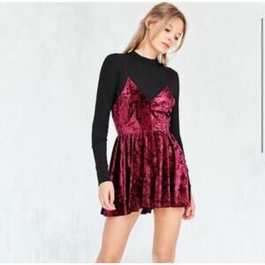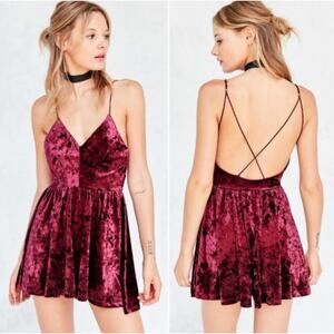 Silence & Noise Crushed Velvet Romper Burgundy Size Small