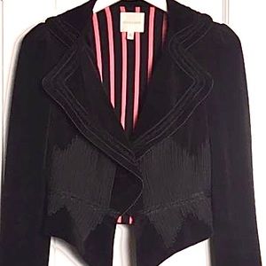 Gorgeous black velvet jacket. So unique. Size L but best suited for an 8/10. Smoke free, pet free home.