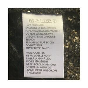 - Design: Black mesh base with gold sequins sewn throughout; some areas are sheer due to the pattern