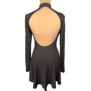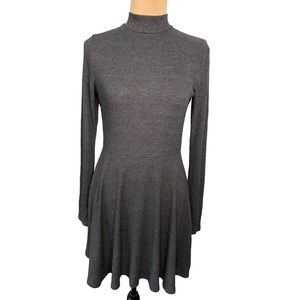 Silence + Noise Gray Knit Mock Neck Skater Dress w/ Back Cut Out Size L