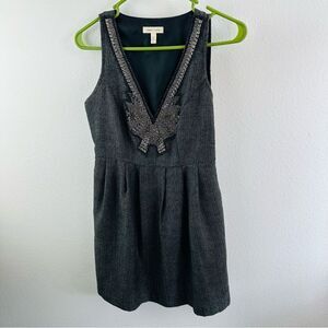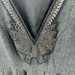 Silence + Noise Gray Black herringbone V Neck Dress Beaded Sz 2 Small