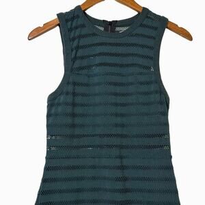 Silence + Noise Green Mesh Cocktail Sleeveless Dress Green Knee Length Medium