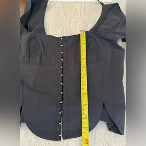 This is a listing for a preowned tags still attached, Silence + Noise Hook & Eye Blouse Urban Outfitters NWT Size XS Black Cropped. Great condition, approximate measurements in photos. Please see all photos for details as they are part of the description.