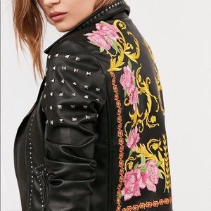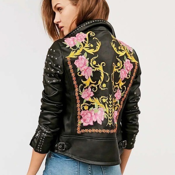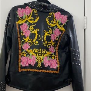 Stunning embroidered biker jacket with stud detailing— helps make any outfit pop!!
