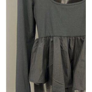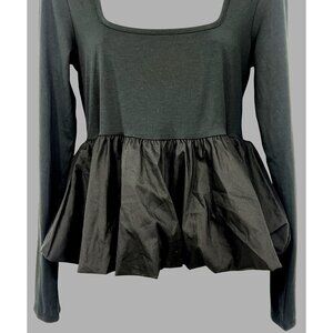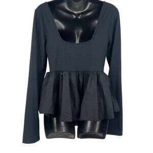 Silence + Noise Large Top Blouse Black Long Sleeve Square Peplum Urban Outfitter