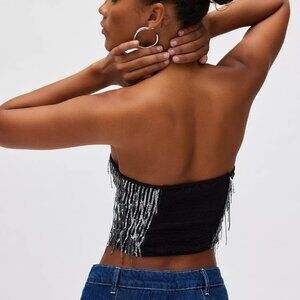 Statement Silence + Noise top in a strapless & cropped tube silhouette. Designed in a stretch fabric topped with layers of sequin fringe tassels across the front for a playful vibe. Only at Urban Outfitters.
