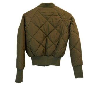 Silence + Noise | Olive Green Zip Front Quilted Bomber Jacket Size XS